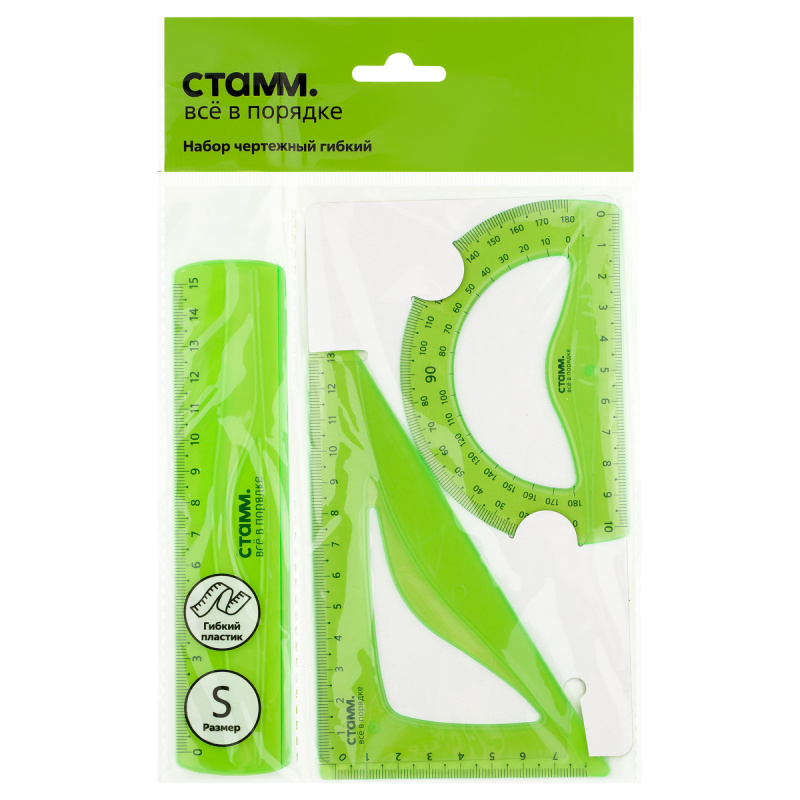 Изготовлен из высококачественного ПВХ. Изделия имеют безопасные закругленные углы и четкую миллиметровую шкалу. Устойчивы к деформации. Упакованы в пакет с европодвесом. Цвет изделий - прозрачный зеленый.