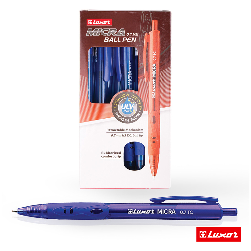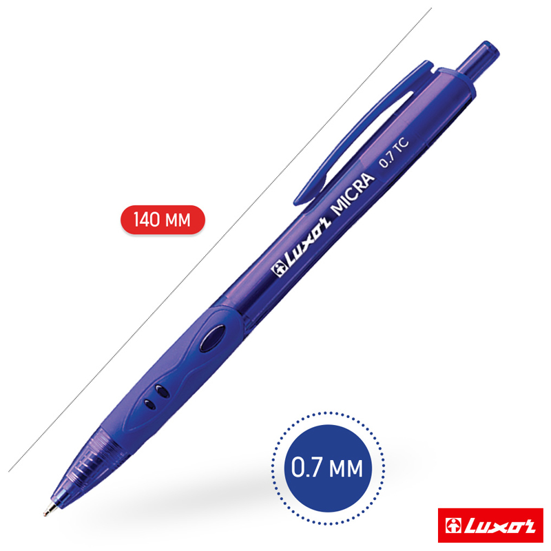 Чернила шариковой ручки на масляной основе пониженной вязкости обеспечивают мягкое ровное письмо и уверенное скольжение по бумаге. Мягкий резиновый грип снижает давление на пальцы рук при письме. Легкий корпус лаконичен по форме и удобен при письме. Диаметр пишущего узла 0,7 мм. Цвет чернил - синий. Упаковка: картонная коробка по 12 штук. Пиши ярко шариковыми ручками Luxor!