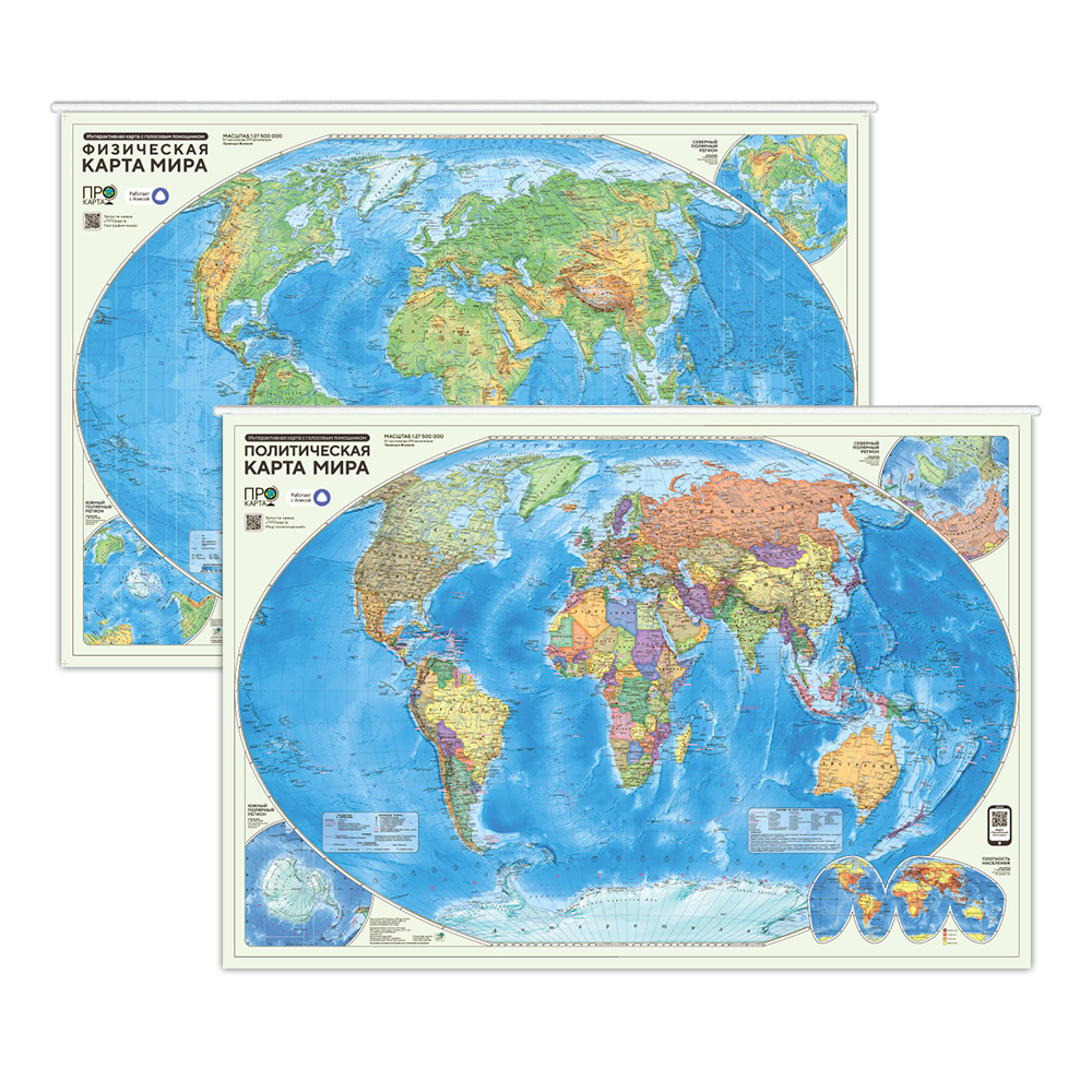 Физическая карта демонстрирует социально-экономические данные: границы, населенные пункты, основные дороги, морские пути, порты и аэропорты, географические объекты и часовые пояса. Наглядно показан рельеф.