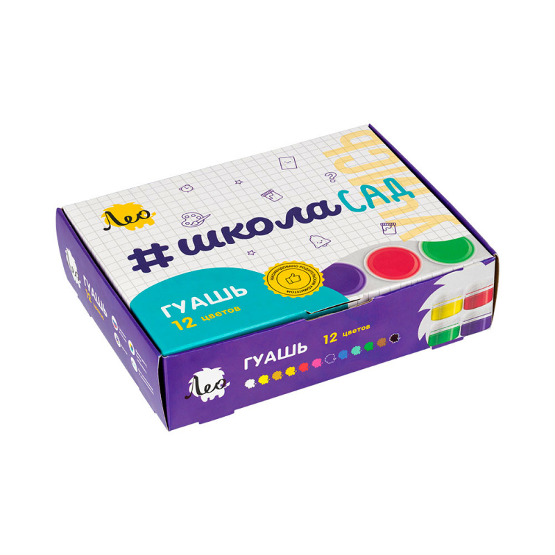 Состав набора: белый, желтый, охра, оранжевый, красный, розовый, фиолетовый, синий, бирюзовый, зеленый, коричневый, черный.