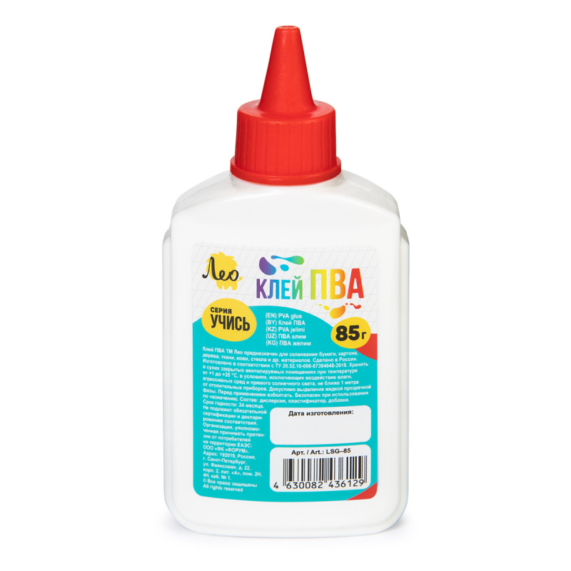 Клей после высыхания не деформирует бумагу, обладает достаточно высокой клеящей способностью. Не содержит растворителей, не токсичен и безопасен для здоровья, легко смывается водой.