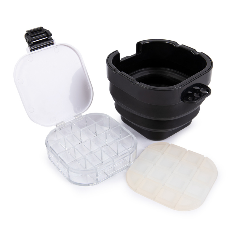 Стакан-трансформер с палитрой предназначен для выполнения художественных работ с красками. Имеет складную емкость для воды и герметичную палитру с 16 ячейками. Удобен для пленэров и выездных мероприятий. Практичен и компактен при хранении.