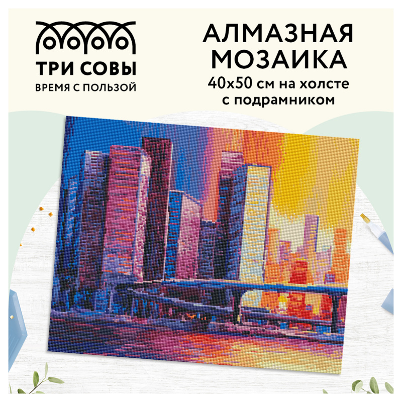 • холст 40*50 см на деревянном подрамнике с цветной схемой картины, покрытый клеевым слоем и защищенный специальной пленкой;