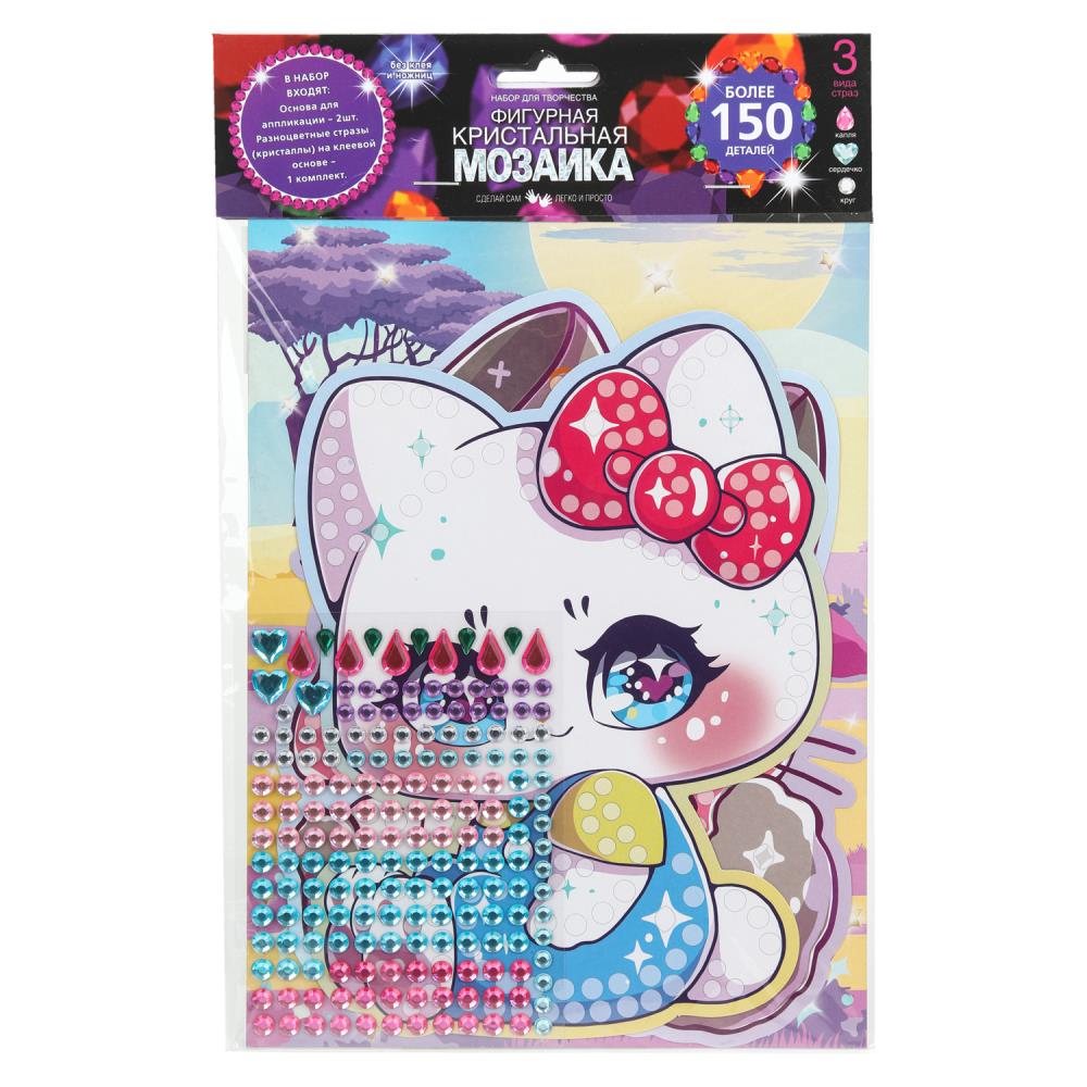 При помощи этого набора юный художник сможет создать красивые картинки-мозаики в виде милых аниме-кошечек, декорированные сверкающими стразами разной формы. Яркую блестящую поделку можно подарить близким или использовать для украшения комнаты.