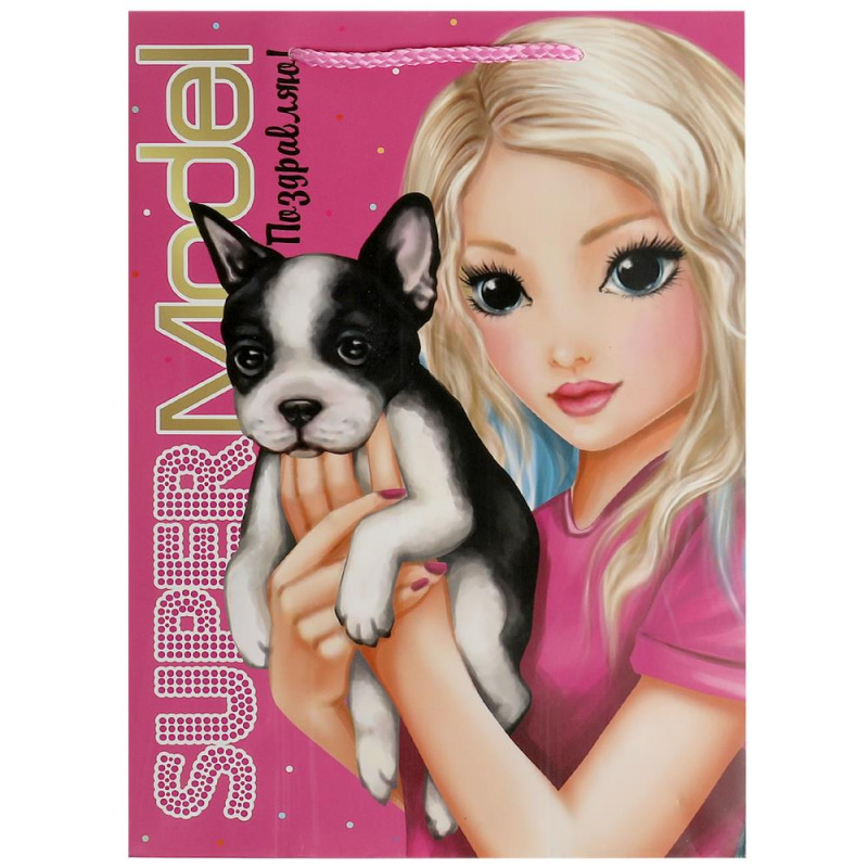 Праздничный подарочный пакет с изображением стильной девочки-модели и очаровательной собачки станет ярким запоминающимся штрихом, изюминкой детского подарка, и принесёт ребёнку радость предвкушения. Девочке будет интересно заглянуть в него, чтобы узнать, что же приготовили родные или друзья на день рождения или на любой другой праздник.