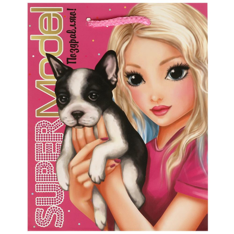 Праздничный подарочный пакет с изображением стильной девочки-модели и очаровательной собачки станет ярким запоминающимся штрихом, изюминкой детского подарка, и принесёт ребёнку радость предвкушения. Девочке будет интересно заглянуть в него, чтобы узнать, что же приготовили родные или друзья на день рождения или на любой другой праздник.