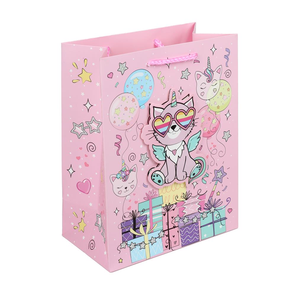 Праздничный подарочный пакет с изображением милых единорогов станет ярким запоминающимся штрихом, изюминкой детского подарка, и принесёт ребёнку радость предвкушения. Ему будет интересно заглянуть в него, чтобы узнать, что же приготовили родные или друзья на день рождения или на любой другой праздник.