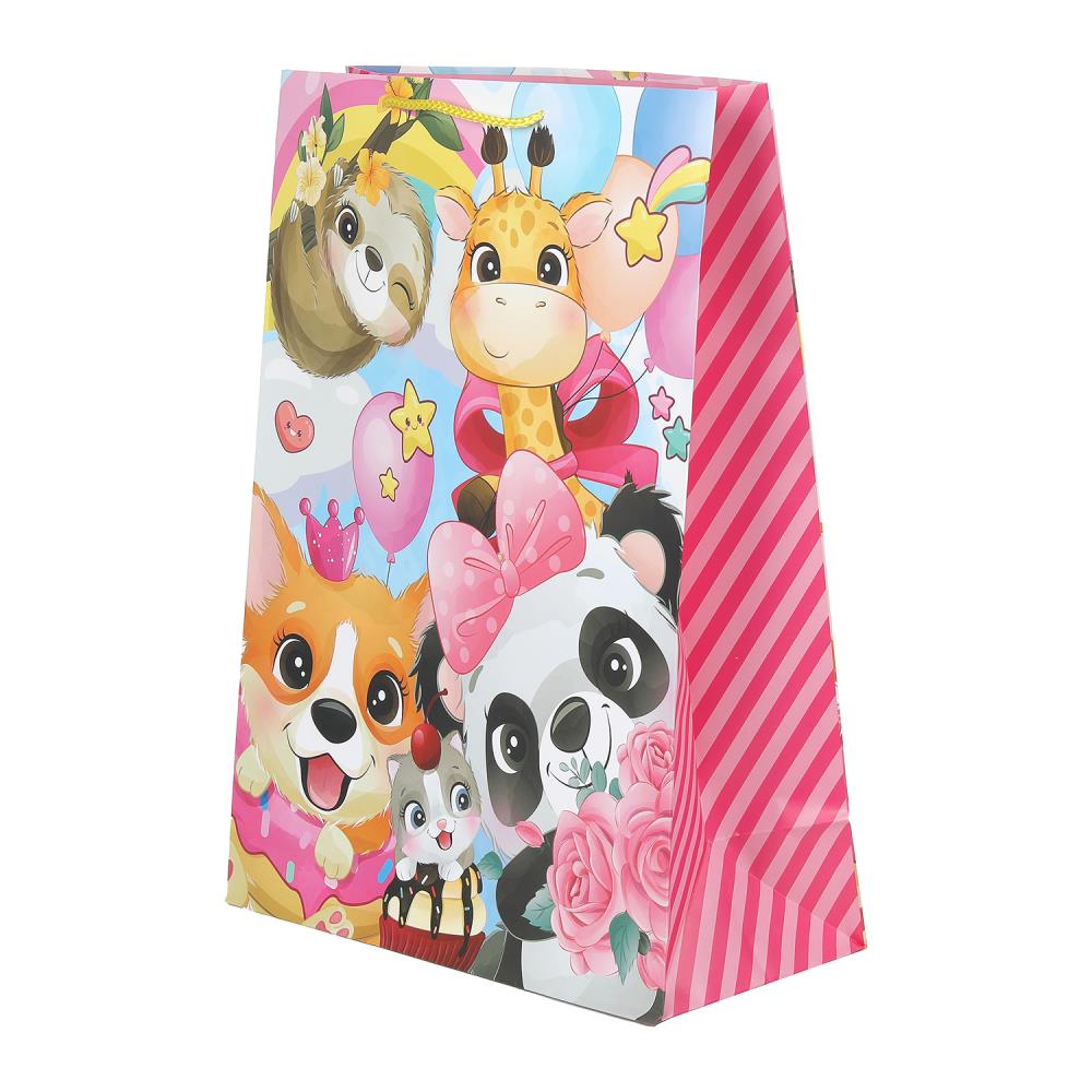 Праздничный подарочный пакет с изображением забавных зверьков станет ярким запоминающимся штрихом, изюминкой детского подарка, и принесёт ребёнку радость предвкушения. Ему будет интересно заглянуть в него, чтобы узнать, что же приготовили родные или друзья на день рождения или на любой другой праздник.
