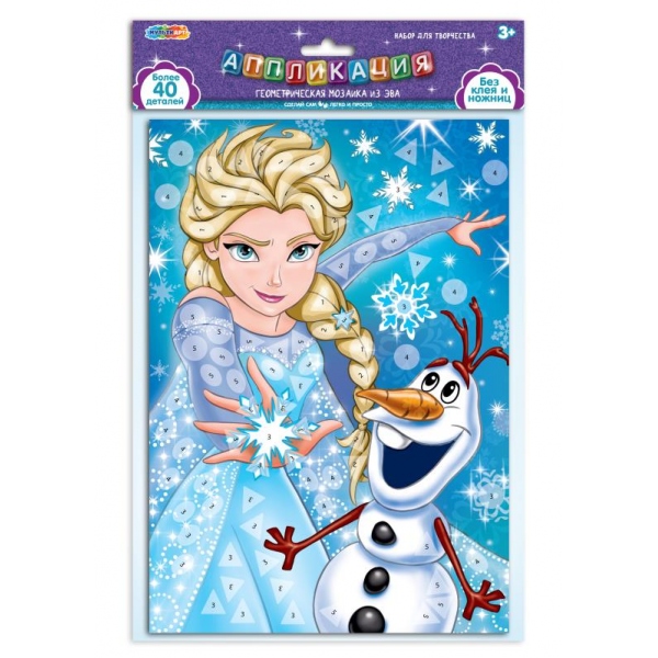 С помощью красочной картонной основы и разноцветных мягких элементов юная художница сможет самостоятельно создать необычную аппликацию с изображением принцессы-волшебницы и её друга-снеговичка. Готовую поделку можно подарить близким или использовать для украшения интерьера.