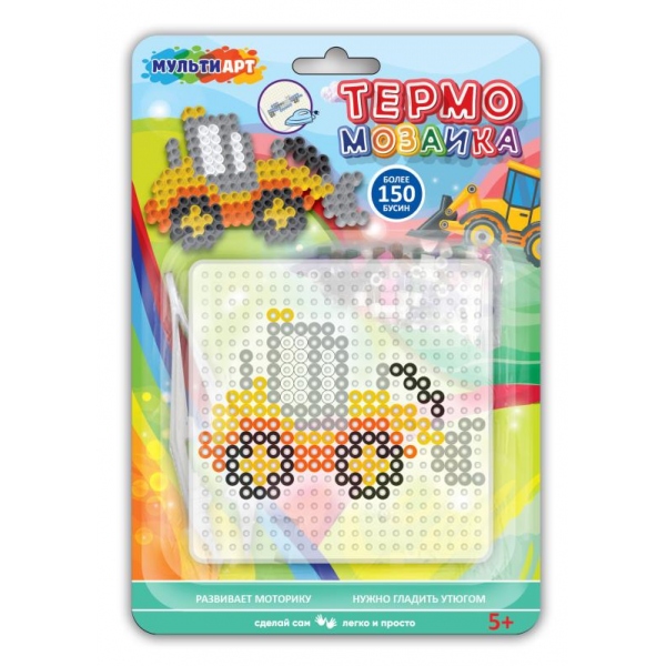 Из разноцветных бусин, входящих в данный набор, юный художник сможет собрать фигурку яркой машинки. Чтобы зафиксировать рисунок, бусины нужно накрыть специальной пергаментной бумагой и прогладить нагретым утюгом. ВНИМАНИЕ: проглаживать поделку может только взрослый! Получившуюся фигурку можно будет использовать для дальнейшей игры.