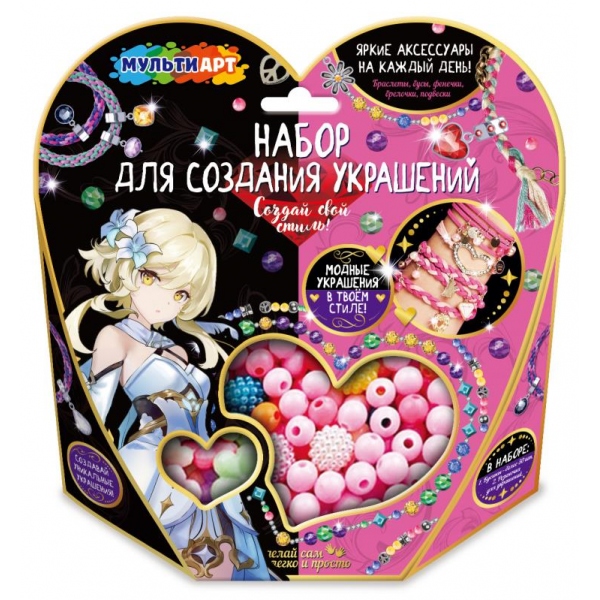 Вашу принцессу непременно увлечёт этот красочный набор для создания стильных украшений. В наборе уже есть всё необходимое, чтобы создавать самые красивые браслеты, бусы, фенечки, брелочки и подвески, которые подойдут к любому наряду. Бусины сделаны из безопасного пластика.
