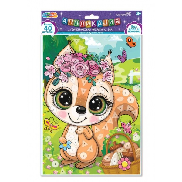 С помощью красочной картонной основы и разноцветных мягких элементов юная художница сможет самостоятельно создать необычную аппликацию с изображением милой белочки. Готовую поделку можно подарить близким или использовать для украшения интерьера.