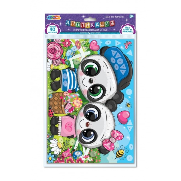 С помощью красочной картонной основы и разноцветных мягких элементов юная художница сможет самостоятельно создать необычную аппликацию с изображением пары забавных медвежат-панд. Готовую поделку можно подарить близким или использовать для украшения интерьера.